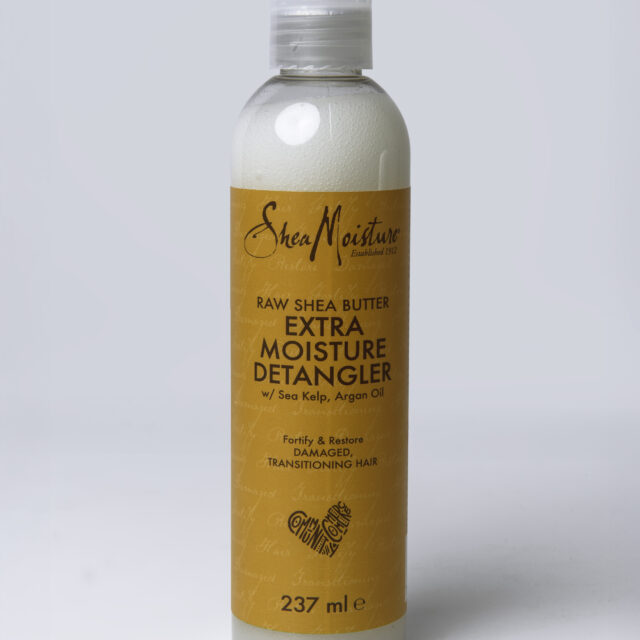 Shea Moisture’s (237 ml) Extra Moisture Hair Detangler is enriched with shea butter, sea kelp, and argan oil. The detangler nourishes and strengthens hair for both stunning natural and protective looks. Smoothens tangles, hydrates, and restores health for every hairstyle.